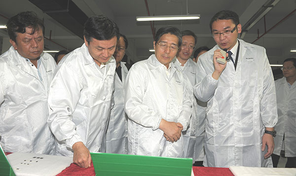 2011年6月21日,廣西壯族自治區(qū)黨委書記郭聲琨到北海調(diào)研千億元產(chǎn)業(yè)建設(shè)期間,在自治區(qū)黨委常委、政府副主席陳武,自治區(qū)黨委常委、統(tǒng)戰(zhàn)部部長黃道偉,自治區(qū)政府副主席林念修,北海市長連友農(nóng)等陪同下,赴中國電子北海產(chǎn)業(yè)園考察調(diào)研,并視察了國鈺電子、惠盛電子兩家入園企業(yè)。北海市委常委、常務(wù)副市長孫大光介紹了北海電子信息產(chǎn)業(yè)發(fā)展情況。郭聲琨書記詳細(xì)詢問了企業(yè)建設(shè)和發(fā)展情況,并親切看望和慰問了園區(qū)一線的建設(shè)者,并對他們?yōu)楸焙?、為廣西的經(jīng)濟(jì)建設(shè)付出的努力表示感謝。