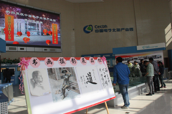 系列活動以當(dāng)月初征集書畫、攝影作品拉開序幕,通過海報、網(wǎng)站、微信等多種平臺號召園區(qū)全體職工與社會關(guān)注園區(qū)發(fā)展的熱心人士參與首屆中國電子北海產(chǎn)業(yè)園書畫、攝影創(chuàng)作比賽,截止開園5周年前夕,共收到各類作品40余幅。經(jīng)過籌備小組、評委、藝術(shù)老師的認(rèn)真篩選、對比,評選出了一二三等獎及優(yōu)秀獎若干名,獲獎作品不僅個性鮮明、創(chuàng)意新穎、富有時代美感,而且體現(xiàn)了電子信息行業(yè)鮮明的特色。獲獎作品與以反映園區(qū)建設(shè)歷程、科技成果、領(lǐng)導(dǎo)關(guān)懷為主題的圖板一同于12月30日在園區(qū)向全體職工展出。