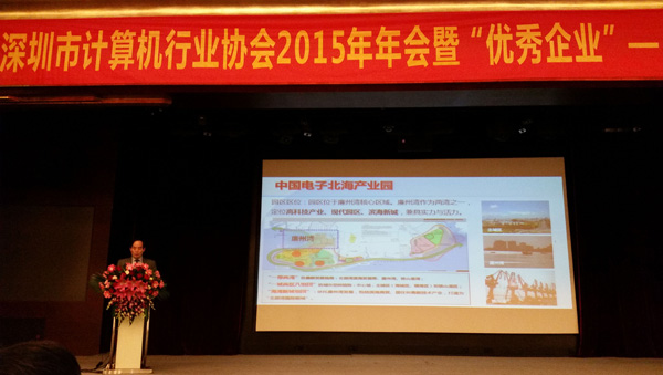2016年1月7日,深圳市計(jì)算機(jī)行業(yè)協(xié)會(huì)2015年年會(huì)隆重舉行,受協(xié)會(huì)之邀,中國(guó)電子科技開(kāi)發(fā)有限公司總經(jīng)理、北海市電子信息行業(yè)協(xié)會(huì)會(huì)長(zhǎng)賀海華率中電科技旗下北海、西安、溫州園區(qū)參加盛會(huì),賀海華與會(huì)員單位分享交流了中電科技建設(shè)產(chǎn)業(yè)園區(qū)板塊經(jīng)驗(yàn),介紹推介了各地方園區(qū)產(chǎn)業(yè)特點(diǎn),衷心希望與各會(huì)員企業(yè)開(kāi)展產(chǎn)業(yè)合作,歡迎來(lái)園區(qū)調(diào)研、拓展業(yè)務(wù),賀海華的精彩講解得到了參會(huì)嘉賓們的高度認(rèn)同與熱烈回應(yīng)。盛會(huì)間隙,北海、溫州、西安園區(qū)相關(guān)負(fù)責(zé)人和意向投資企業(yè)進(jìn)行了暢談,現(xiàn)場(chǎng)氣氛活躍,很多企業(yè)對(duì)中國(guó)電子投資建園的地區(qū)表達(dá)了合作意向,愿意進(jìn)一步加強(qiáng)了解與合作,其中,北海以獨(dú)特的區(qū)位優(yōu)勢(shì)、產(chǎn)業(yè)政策、生態(tài)優(yōu)勢(shì),備受多家深圳企業(yè)重點(diǎn)關(guān)注。