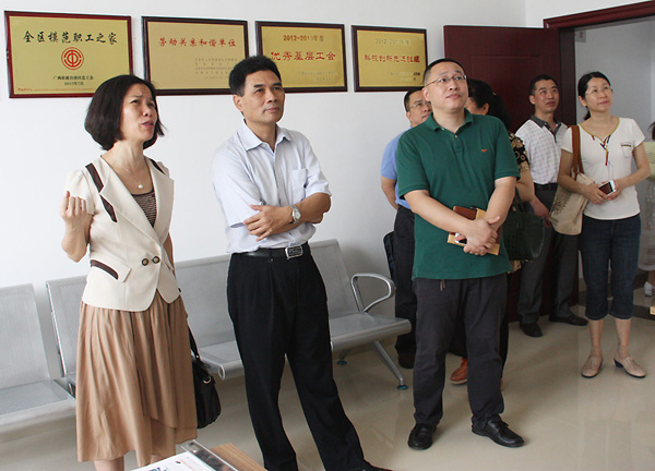 2016年5月19日,由自治區(qū)總工會副主席元德新率領(lǐng)的自治區(qū)總工會調(diào)研組在北海市總工會書記柳金紅的陪同下,到中國電子北海產(chǎn)業(yè)園考察“五心”職工之家建設(shè)情況。