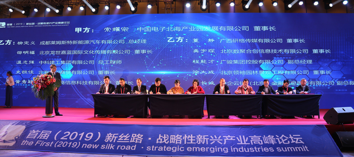 2019年1月10日,以“創(chuàng)新引領(lǐng)戰(zhàn)略性新興產(chǎn)業(yè)”為主題的首屆(2019)新絲路·戰(zhàn)略性新興產(chǎn)業(yè)高峰論壇在北海舉行。外貿(mào)部原副部長周可仁、市長蔡錦軍、中電北海產(chǎn)業(yè)園公司董事長索耀宗出席論壇并致辭。有關(guān)國家部委領(lǐng)導(dǎo)、院士專家、行業(yè)組織的代表,新一代信息技術(shù)、智能制造、大健康、影視文化等國內(nèi)外企業(yè)家以及金融投資機(jī)構(gòu)負(fù)責(zé)人、媒體機(jī)構(gòu)代表、科研院所代表500多人參加了此次盛會(huì)。