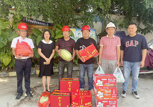 2023年7月19日下午,園區(qū)項目中電春海湖、中電海灣國際建設(shè)現(xiàn)場烈日炎炎,受集團公司領(lǐng)導的委托,中國電子北海產(chǎn)業(yè)園公司副總經(jīng)理劉曉娟到項目建設(shè)現(xiàn)場,為高溫天氣下堅守在一線的工作者送去了清涼和慰問,囑咐大家在高溫天氣下工作要做好防暑降溫措施,合理安排工作時間。
